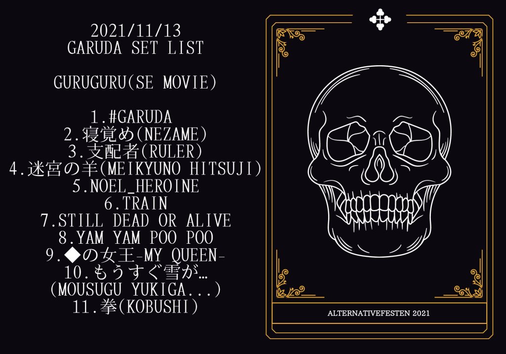 Ich hab mir nach dem Alternativfesten ’21 jedenfall auf meine Liste geschrieben unbedingt einmal eine GARUDA Show in Japan zu erleben, in einen Raum gefüllt mit ihren treuen Fans muss die Energie unglaublich sein ^^